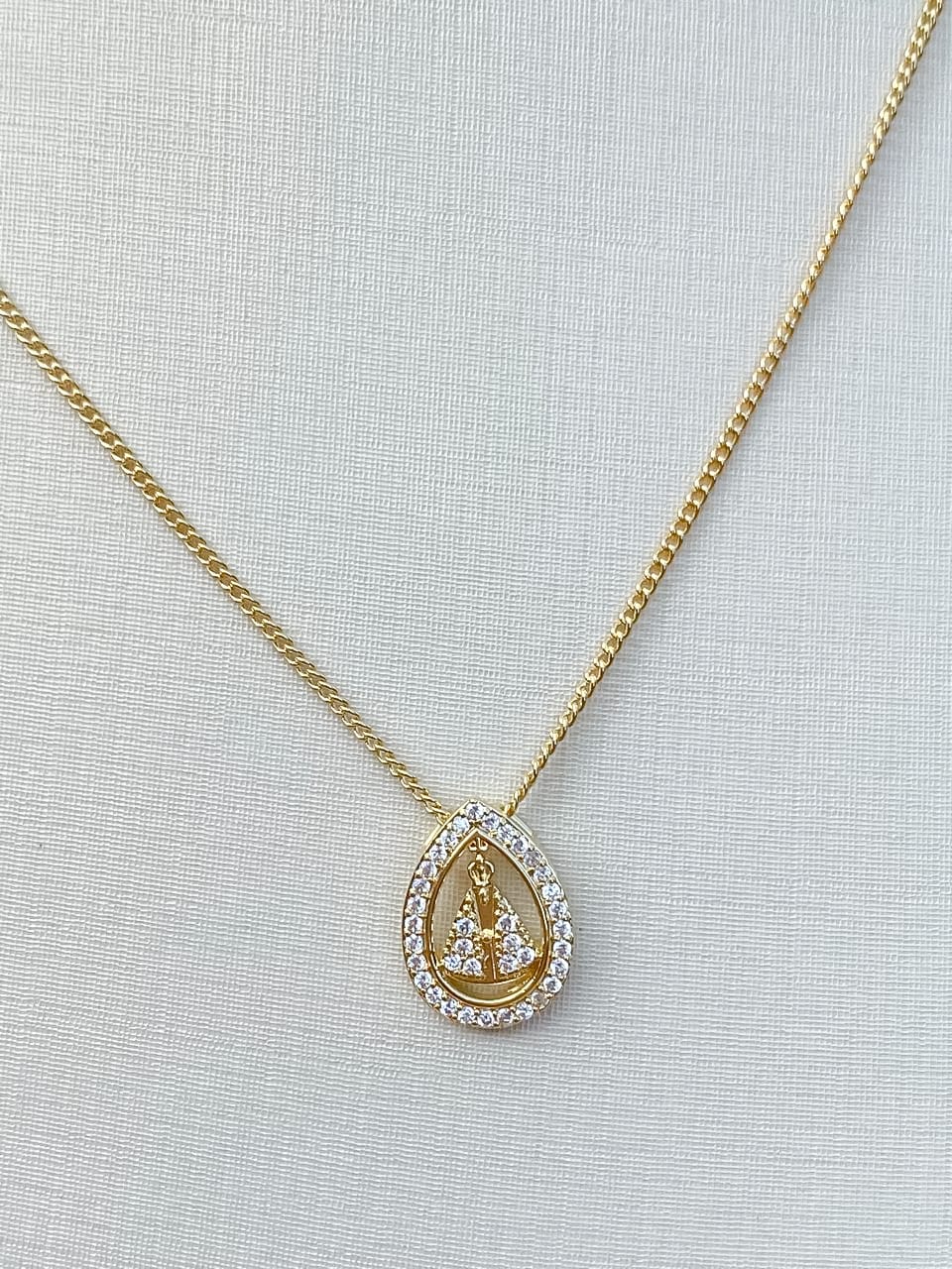 Colar Gota Nossa Senhora Aparecida Cravejado em Zircônias Cristal