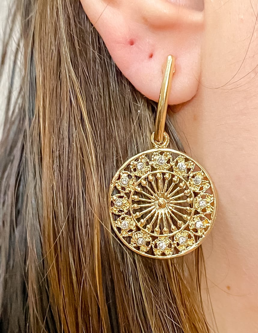 Brinco Mandala com Zircônia Banhado a Ouro 18k