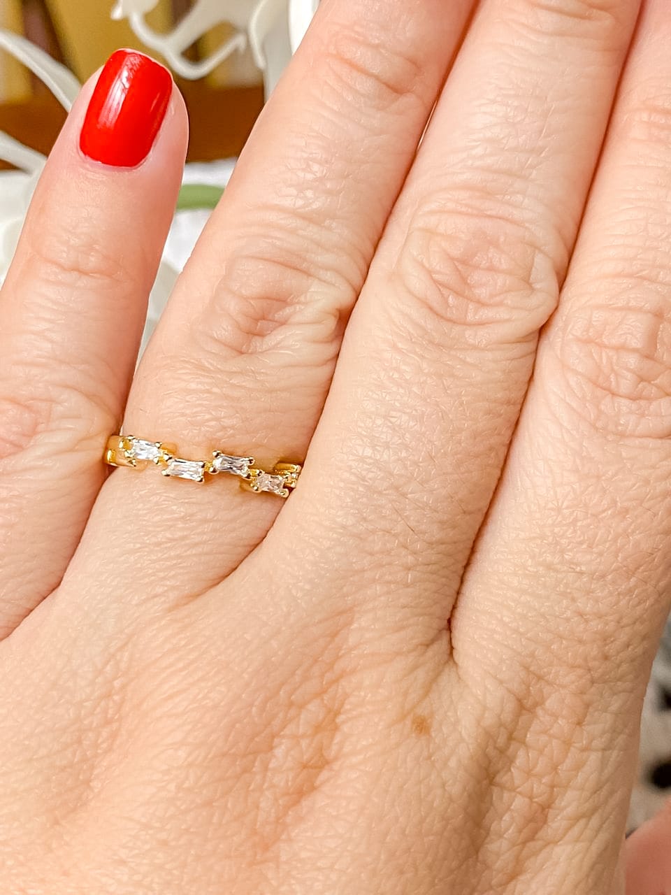 Anel Regulável com Zircônias Baguete Retangular Cristal.