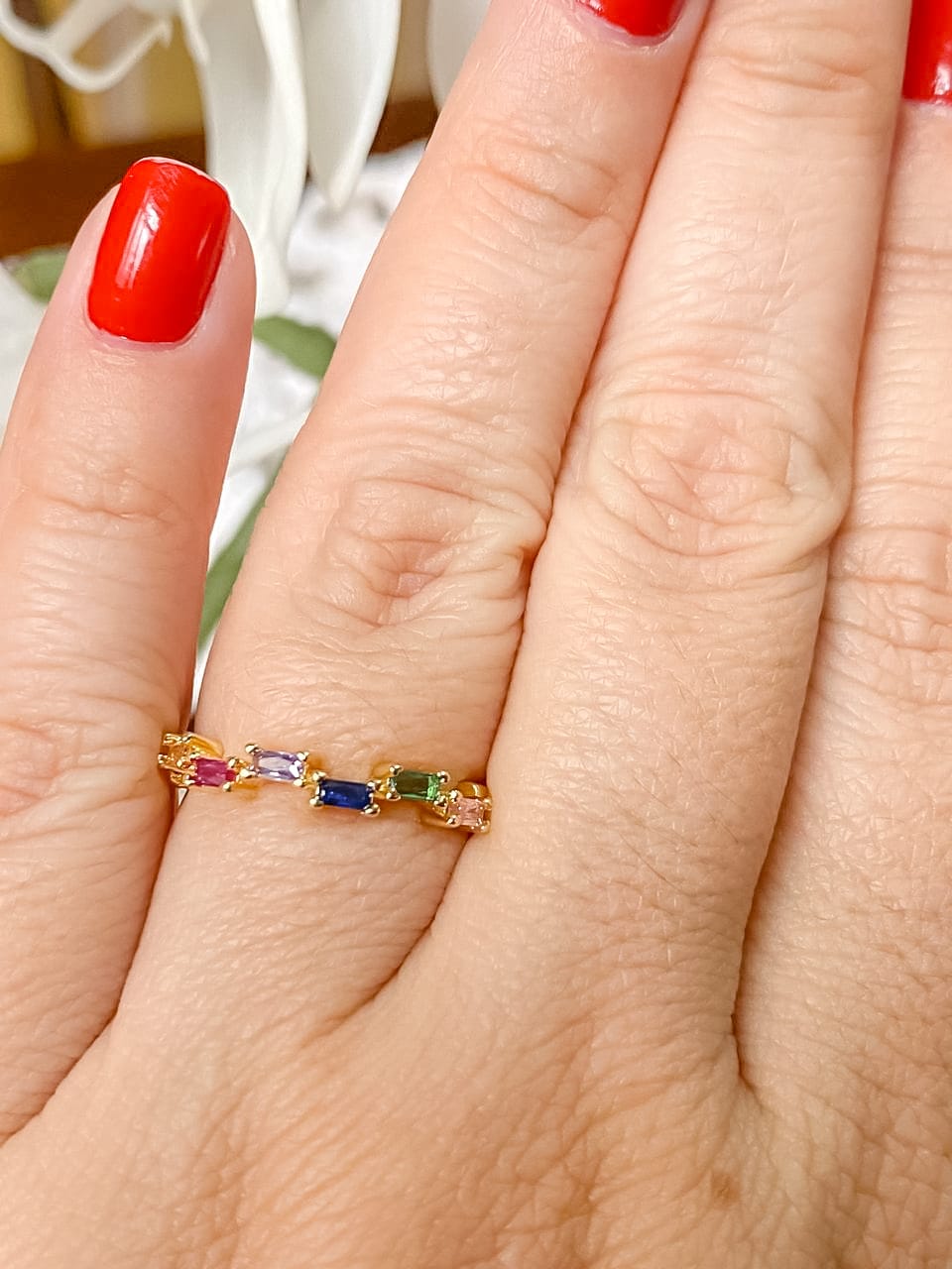 Anel Regulável com Zircônias Zircônias Baguetes Coloridas