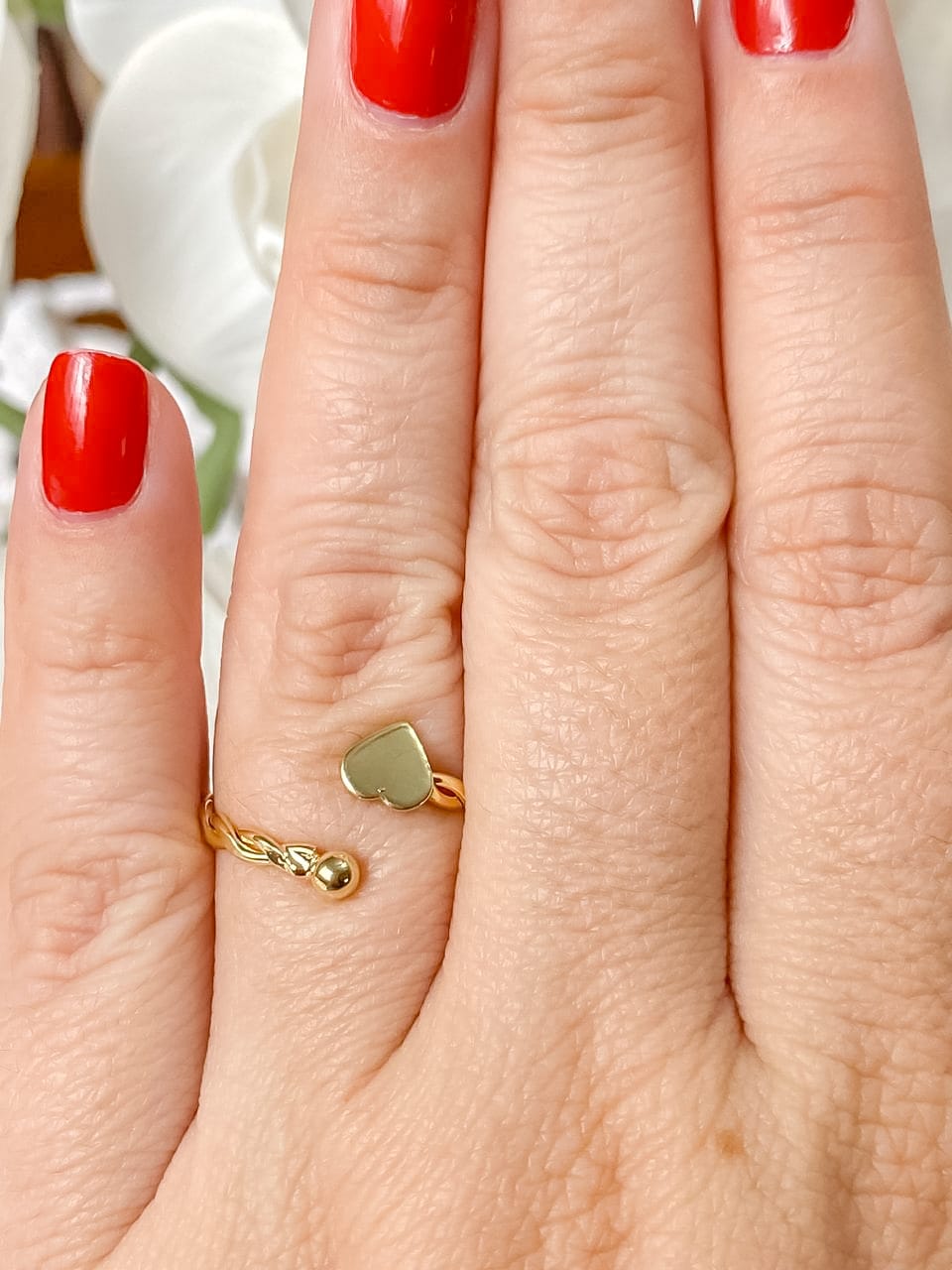 Anel Regulável Aro Torcido com Coração e Bolinha.