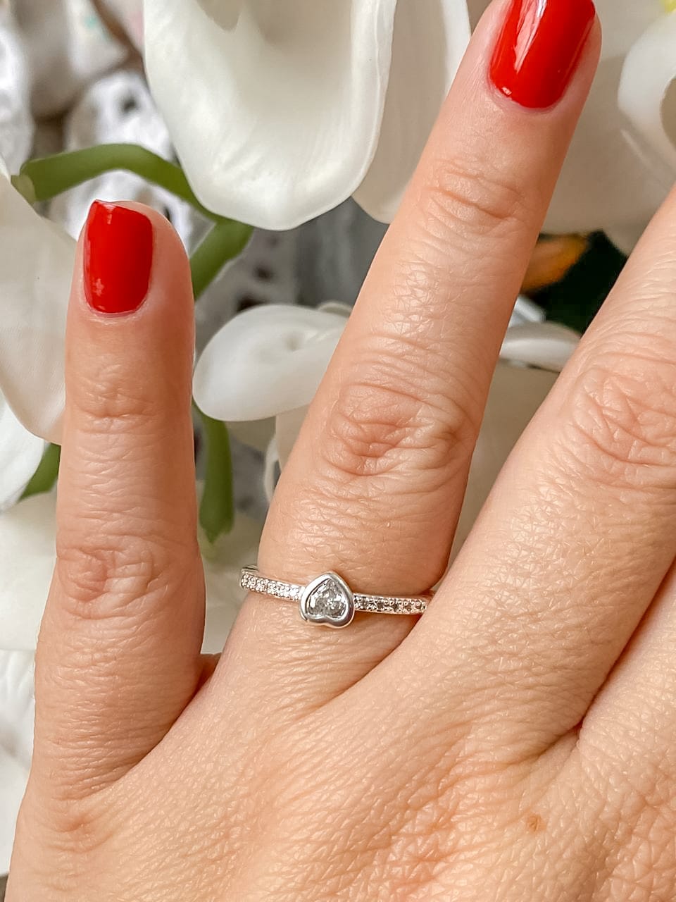 Anel Solitário Cravejado em zircônias com Coração em Zircônia Central.