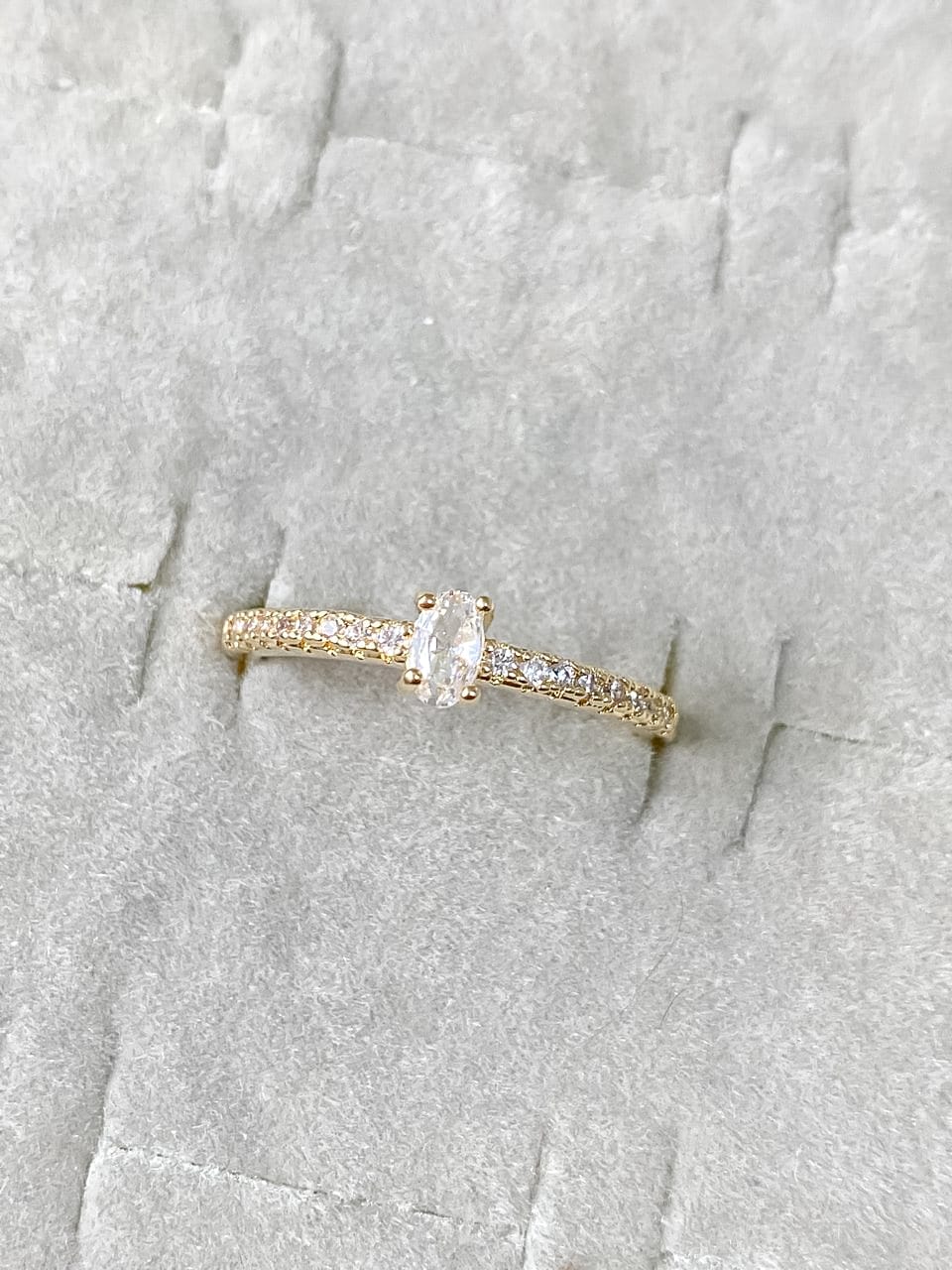 Anel Solitário Pedra Oval e Aro Cravejado em Zircônias.