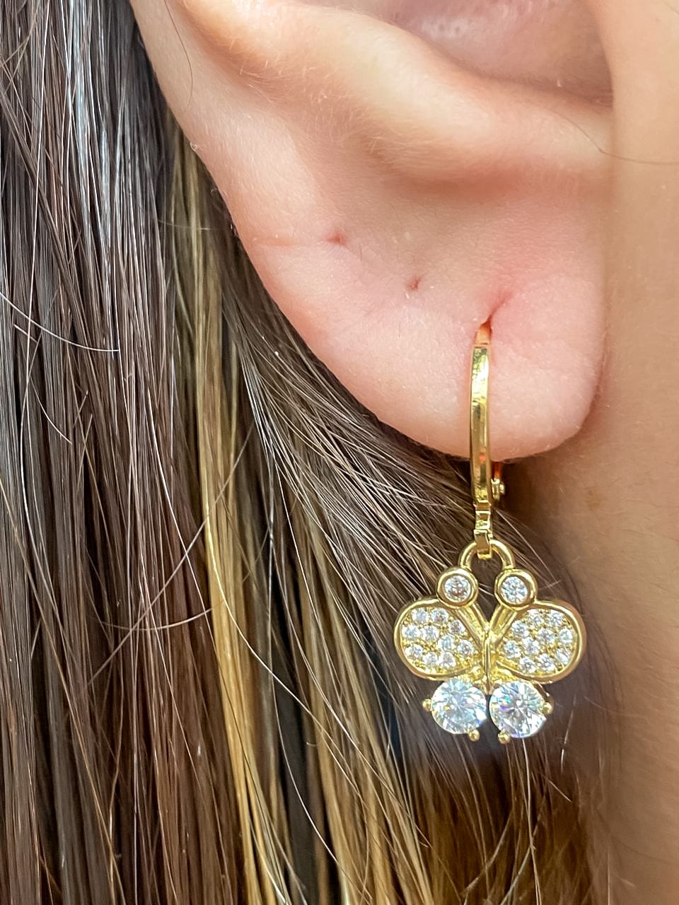 Brinco Argolinha Borboleta com detalhes em zircônias.
