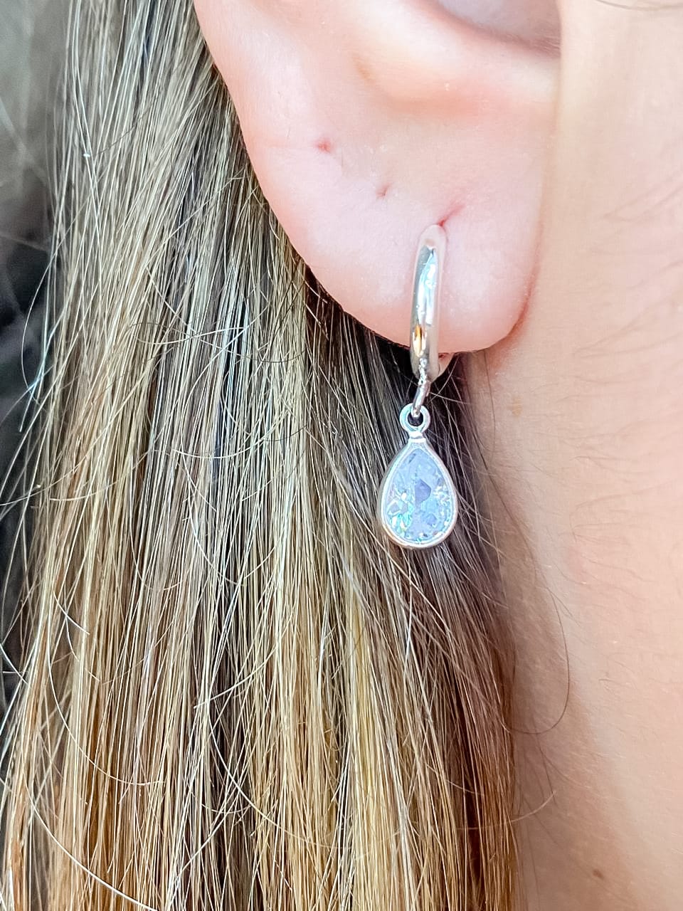 Brinco Argolinha Pingente Gota em Zircônia
