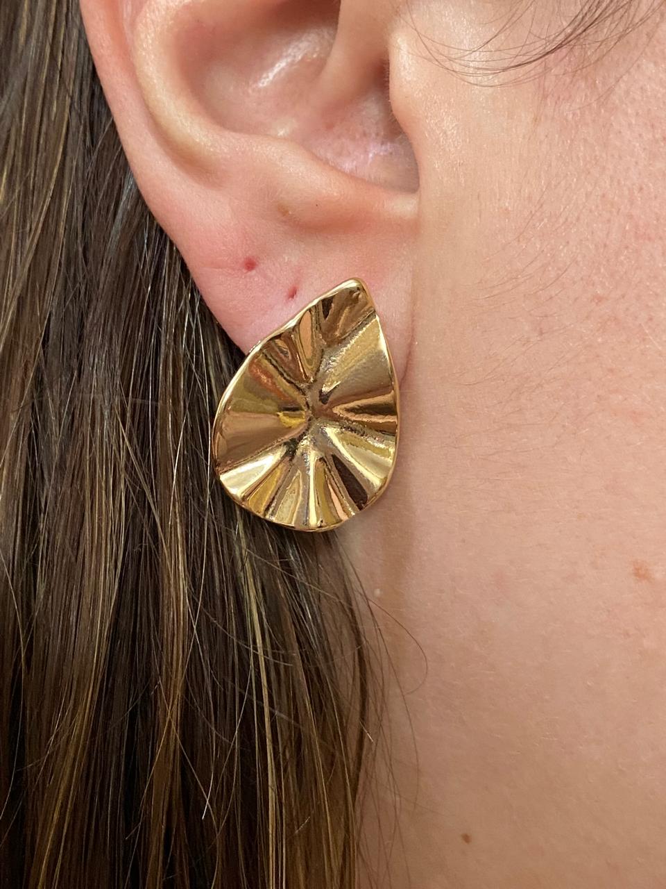 Brinco Orgânico Gota Martelado Banhado a Ouro 18k