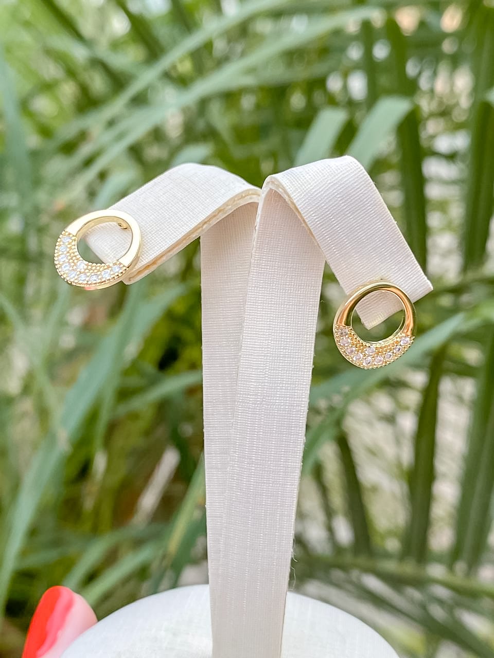 Brinco Oval Pequeno Cravejado em Zircônias