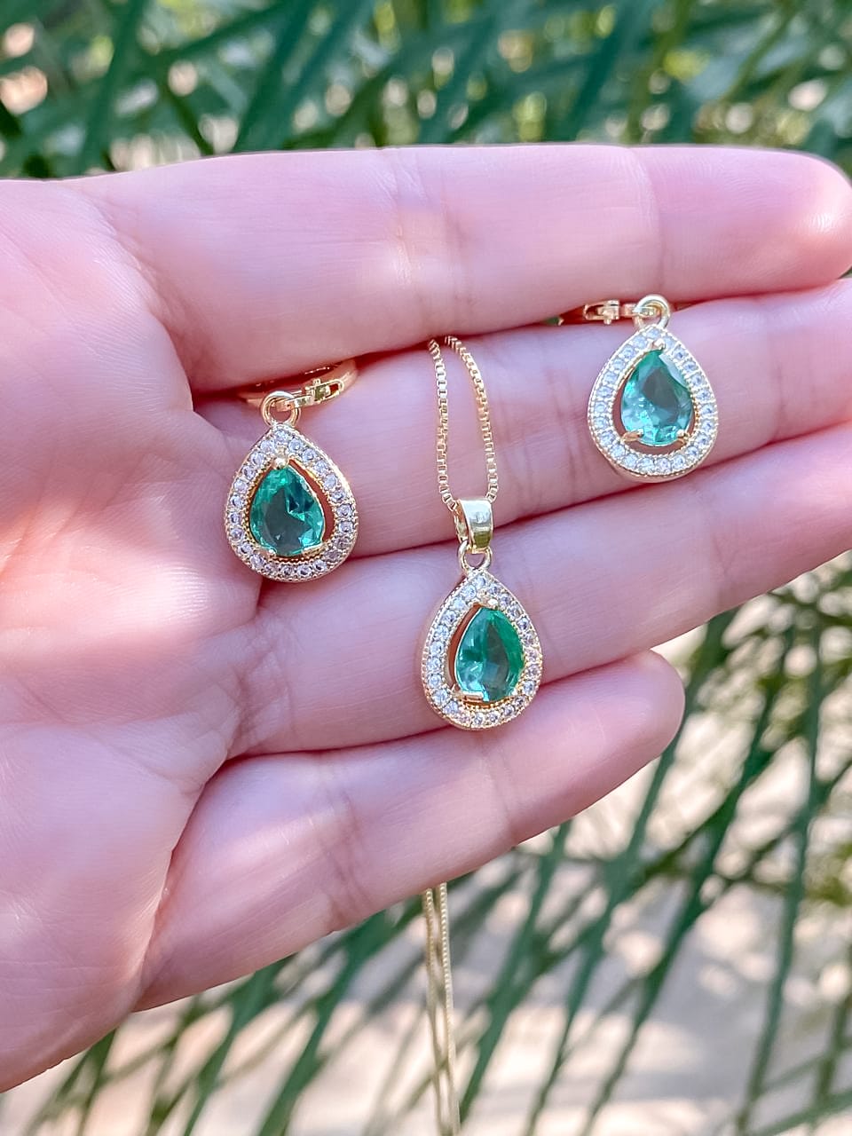 Conjunto Gota Pedra Turmalina Cravejado em Zircônias